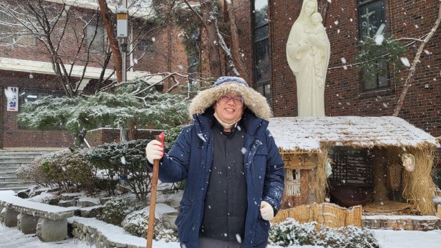 흰눈이 펑펑 내린던 날신부님, 수녀님, 사무장님, 베네딕토 형제님그리고 예쁜 총회장님과 이쁜 자매님들...함박눈이 펑펑 내려 쌓이는 눈을쓸고 또 . . .